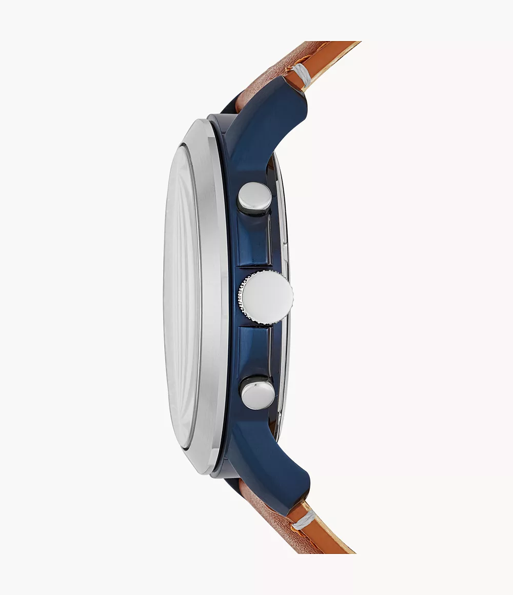 Built to outlast fleeting trends, our refined Grant is a superlative investment fit for any occasion. This timeless chronograph gets refreshed for the season with a handsome blue dial, silver-tone topring, white hands and light brown leather strap.