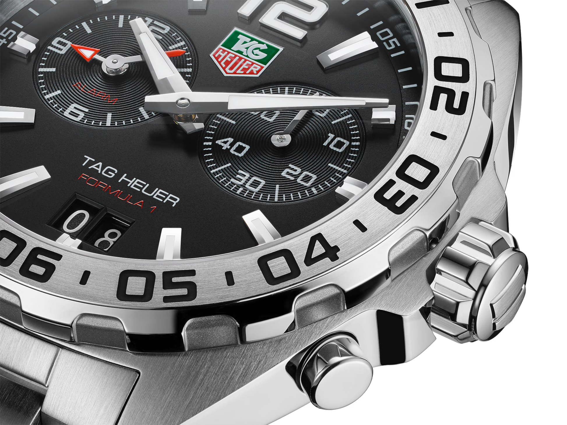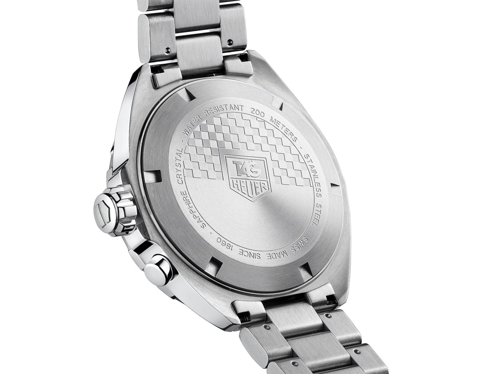 A rugged sports alarm watch endowed with the timing technology and expertise TAG Heuer has accumulated over decades of intense Formula 1 involvement. Built of solid stainless-steel and water resistant to 200 meters, it is the perfect introduction to a motor-racing legend.